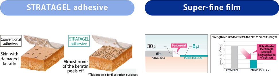 Film dressing prevents water from penetrating when stabilizing a part when injured or wearing something on the body. YUKI-BAN PERME-ROLL Lite, has been added as a new product. It is thinner than the PERME-ROLL™ series film and has about one quarter of the thickness. Just as gentle to the skin as the conventional product, it conforms snugly to the irregularities of the skin and achieves comfort as if nothing has been applied. The PERME-ROLL™ series will contribute to a more care-free and abundant life for patients.