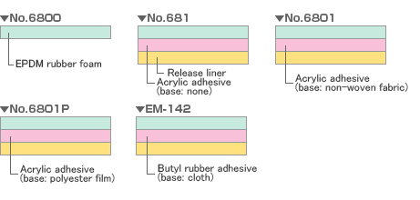 A série nº 6800 conta com materiais de vedação em espuma de alta função, constituídos de espuma de EPDM, com uma estrutura de célula fechada que oferece melhor durabilidade e resistência a intempéries entre todas as borrachas para fins gerais. A série nº 6800 inclui materiais de fita revestida com adesivo de butilo e adesivo de resina sintética. Você pode selecionar o tipo que melhor atenda às suas necessidades.