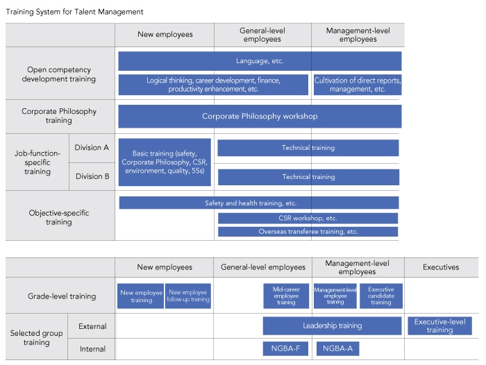 Determiniamo le conoscenze e le competenze di cui le persone hanno bisogno in ogni fase della carriera, integrandole in un programma di formazione, in modo che ogni collaboratore possa scegliere autonomamente i corsi a cui è interessato. Al contempo proponiamo una ricca scelta di opportunità di formazione su misura per ogni funzione lavorativa, come vendite, ingegneria dei processi e fabbricazione, potenziando il livello generale di competenza di ogni funzione. Oltre a favorire queste opportunità di formazione intensificheremo il nostro impegno nel promuovere un ambiente e una cultura in cui l'intero ambiente di lavoro funga da veicolo per lo sviluppo delle risorse umane.