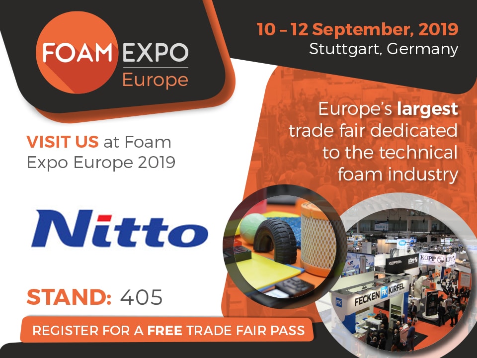 Компания Nitto примет участие на выставке FOAM EXPO Europe, которая состоится в Штутгарте (Германия) с 10 по 12 сентября. Основное внимание Nitto уделит инновационным герметизирующим материалам и семейству двухсторонних адгезионных лент, поскольку они уже более 25 лет соответствуют самым строгим требованиям клиентов. Наш материал EPT-Sealer, ламинированный двусторонними клейкими лентами, может позволить вам решать все задачи по герметизации.