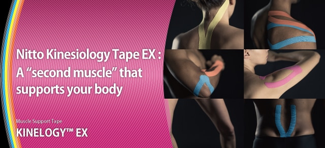 Nitto Kinesiology EX and other kinesiology tapes aim to serve as a “second muscle”. For top athletes, it has become a necessary tool for them to keep their best conditions. For those who enjoy various sports, it is also used to prevent injuries. Furthermore, it is used as a supporting tape to alleviate the pain of everyday life at osteopathic clinics and so on.