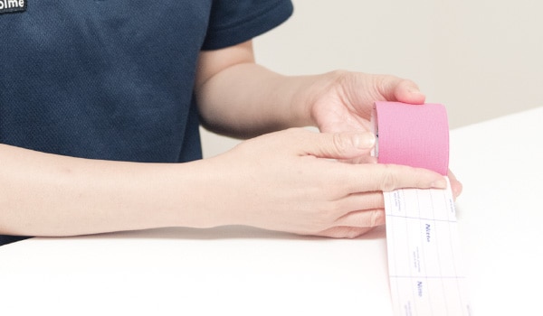 The trainer repeats applying and removing the athletic tape until the athlete is satisfied with how it feels. Although athletic tapes directly applied to the skin of such athletes need to be gentle on the skin while closely adhering without discomfort, it is also essential that the tape does not peel off during intense movements or sweating. Also, the tape needs to be able to be applied and removed many times. “Nitto Kinesiology Tape EX” is an athletic tape that top-atheletes and trainers choose with satisfication, from a number of athletic tapes.