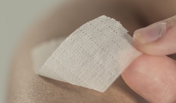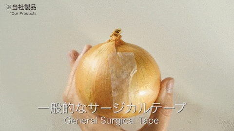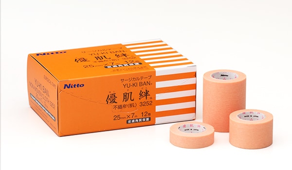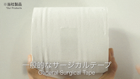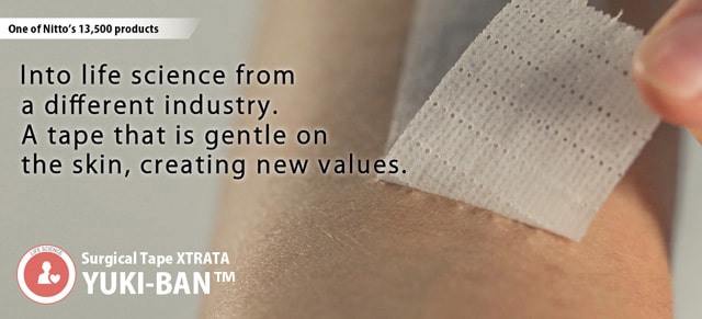 Surgical tape is used everyday at medical and nursing care sites. It is indispensable in attaching drip needles, gauze or bandage, or to protect a wound. However, the stimulation of the adhesive used in the tape, used to cause skin problems such as rough skin and/or allergies. Also, when changing the tape, peeling it off of the skin surface could cause pain and rough skin due to the excessive adhesive strength of the tape. Nitto created the first tape that demonstrated the value of “skin-friendly” to the field of surgical tape, which was a concern for those with weak skin.