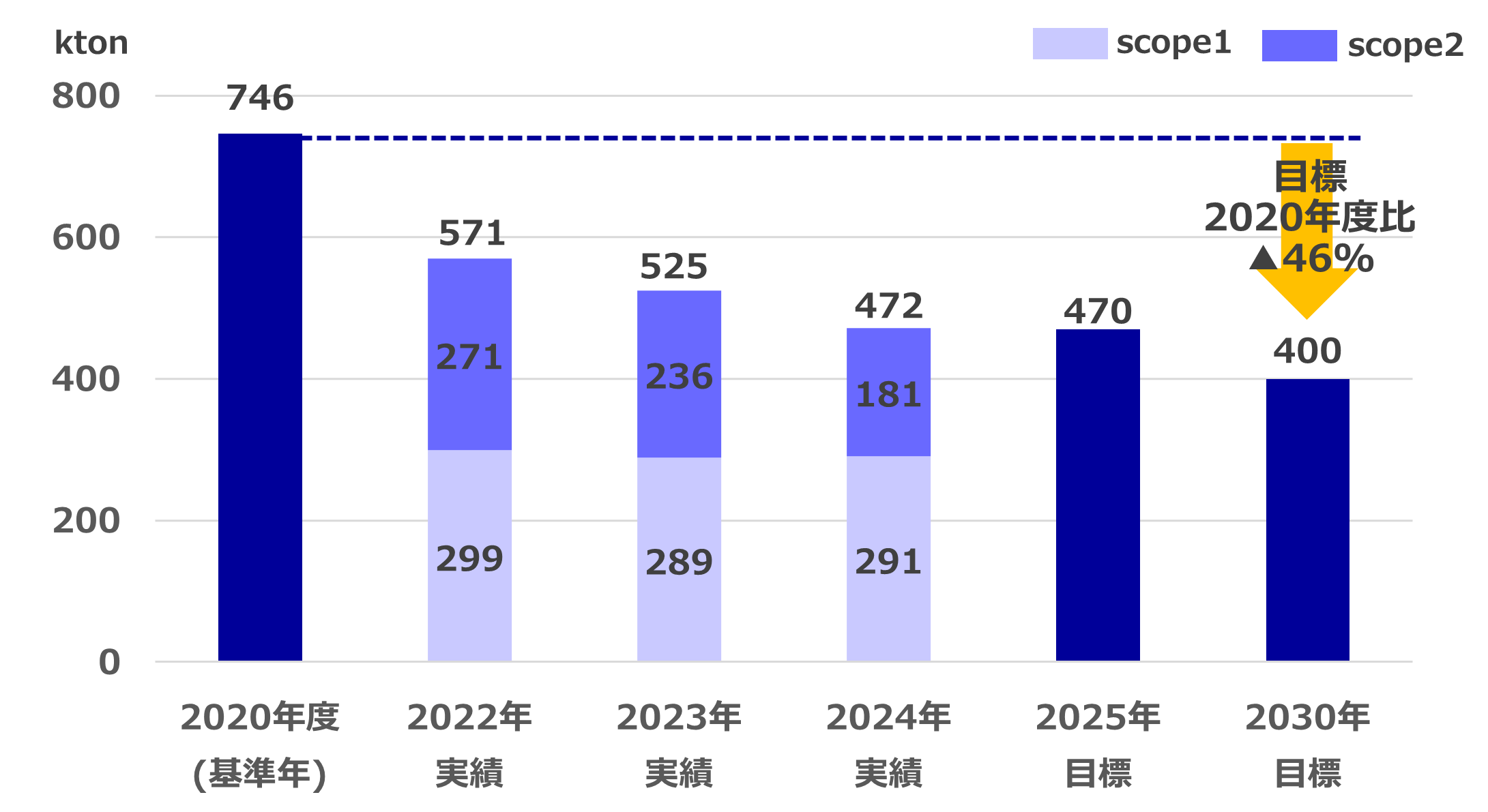 CO2排出量(scope1+2):400kton(2030年)※SBT認定 | |