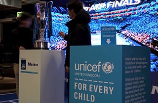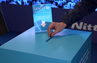 Nitto Denko Corporation(본사: 오사카, 사장: Hideo Takasaki, 이하 “Nitto”)은 2018년 11월 11일 일요일부터 11월 18일 일요일까지 개최된 2018 Nitto ATP Finals에서 다양한 자선 활동에 참여했습니다. Nitto는 미래를 위해 노력하고 있는 모든 아동을 응원한다는 컨셉으로 유엔아동기금(이하 “UNICEF”)을 UNICEF UK를 통해 지원했습니다. Nitto는 회사 부스에서 모금하는 일을 지원하고 UNICEF에 어린이 마스코트 공간을 제공했습니다. 또한 Nitto 직원은 단체로 기부금을 모금하거나 UNICEF에 직접 기부하여 뜻을 함께했습니다.