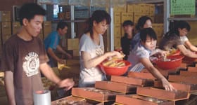 Tayvan’daki, “Çocuklar Bizim Vakfı”, orta düzeyde zihinsel engelleri olan insanlara daha fazla bağımsızlık kazandırmak üzere yardımı amaçlamaktadır. Vakıf, “bir adama balık tutmayı öğret; o hayatı boyunca yemek yer” anlayışından hareket etmektedir. Çocuklar Bizim Vakfı, zihinsel özürlü insanlara çalışma olanağı sağlayan bir ay pastası üretim fabrikasını işletmektedir. Ay Pastaları Tayvan’da sonbahar ortası hasat festival kutlamalarının esas bir parçasını oluşturmaktadır, dolayısıyla ay pastası siparişleri o zamanlarda hız kazanır. Nitto Denko (Tayvan) Corporation, hafta sonlarını ve tatillerini, ay pastalarının paketlenmesi ve ambalajlanmasına yardım etmek üzere ayırmak üzere değerlendirecek gönüllüleri bir araya getirdi. |