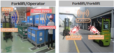 Korea Nitto Optical, sıfır forklift kazası hedefine ulaşmak amacıyla bir insan algılama sensörü ve IC etiketlerini uygulamaya koydu. Bu sistem, üzerinde IC etiketi bulunan yayalar insan algılama sensörleri bulunan forkliftlere belirli bir mesafede yaklaştığında bir uyarı alarmı verir (Resim.1). Bu, belirli bir mesafede birden fazla forklift birbirine yaklaştığında da geçerlidir (Resim.2). Bu mühendislik yaklaşımı sayesinde, forkliftle ilgili riskler büyük ölçüde azaltılmıştır.